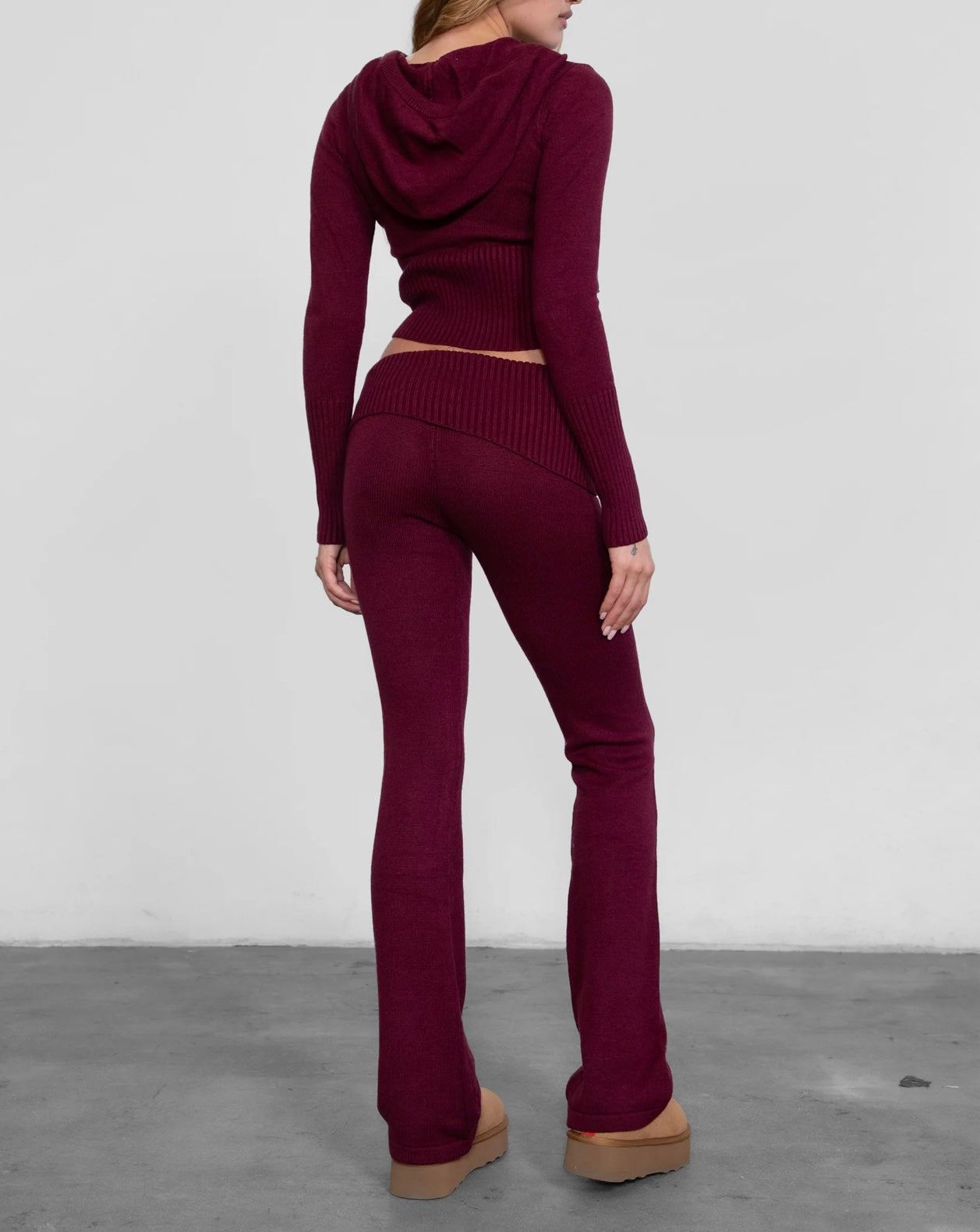 -Knitted Fold Over Flare Pants